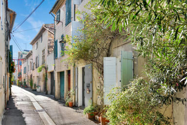 The entrance to the building is located on a Provençal pedestrian street, with public parking nearby. The apartment, located on the 2nd floor without an elevator, only has skylights, providing beautiful natural light.