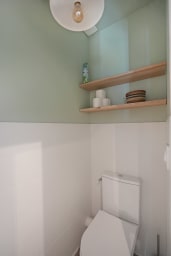 Upon entering, you will be immediately charmed by the natural and soothing decor of our 30m² apartment, fully furnished and equipped to accommodate up to 4 people. Enjoy the spacious living room that opens to the bedroom via a chic glass roof. In addition to being aesthetically pleasing, "La Tourterelle" is also eco-friendly, thanks to its enhanced insulation, reversible heat pump, and innovative faucets.