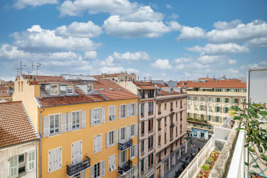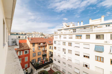 El Apartamento Mamabaldi, situado en el corazón del barrio más animado de Niza, a dos pasos de la Place Garibaldi, le recibe en la 6ª y última planta en un entorno tranquilo y luminoso. Terraza de 14 m² con vistas, dos dormitorios, aire acondicionado, equipamiento de alta gama y acceso rápido al tranvía, las playas y el centro de la ciudad: la dirección ideal para una estancia perfecta en Niza.