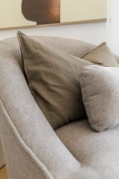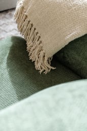 🛋️ El salón, cálido y elegante, invita inmediatamente al descanso. El sofá en tonos verdes, armoniosamente integrado en el espacio, se sitúa frente a una Smart TV de gran formato (120 cm).