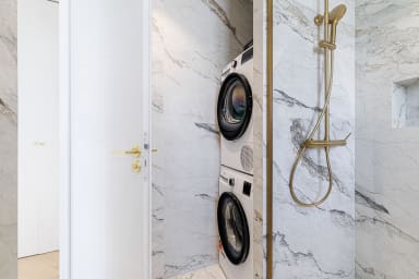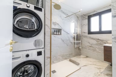 También dispone de lavadora, secadora y espacio para tender la ropa.