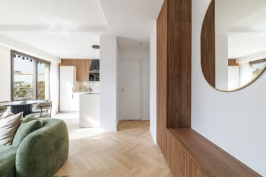 🚪 Desde la entrada, el apartamento seduce por su distribución funcional y bien pensada. Encontrará un armario de madera con espejo, ideal para prepararse antes de salir. La puerta de entrada con cierre de seguridad de tres puntos garantiza tranquilidad y serenidad durante su estancia.